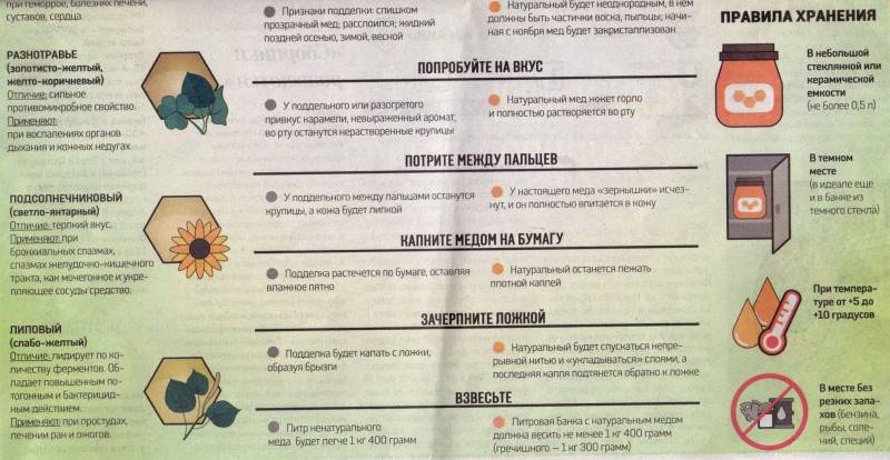 Вкусовые качества зависят от сорта и культур, с которых пчелы собирают нектар. Чтобы отличить настоящий мед от ненатурального, стоит ориентироваться на такие признаки: