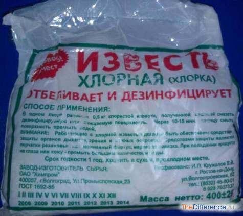 - хлорная (Ca(Cl)OCl) – в просторечии «хлорка», получаемая при химической реакции, в которой участвуют гашеная известь и хлор;