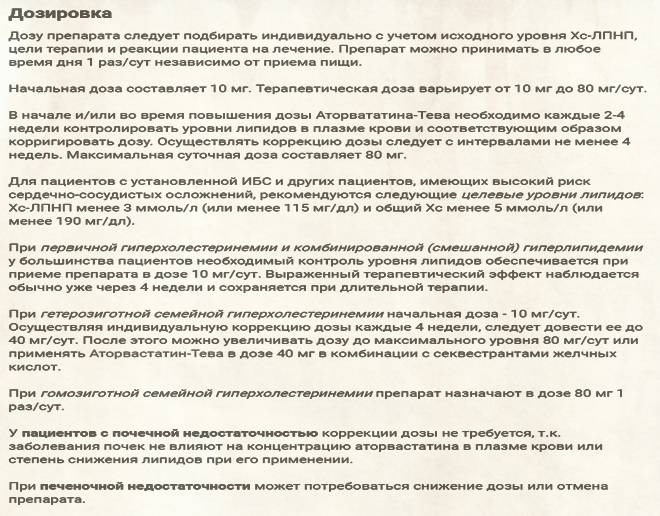 Схемы дозирования Аторвастатина