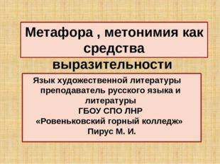Метафора , метонимия как средства выразительности Язык художественной литературы преподаватель русского языка и литературы ГБОУ СПО ЛНР «Ровеньковский горный колледж» Пирус М. И.