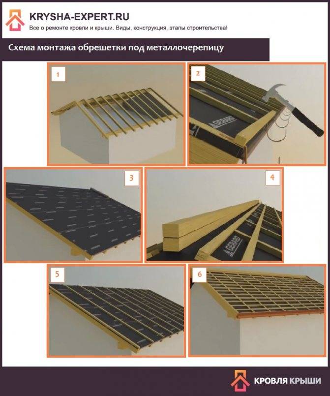 Для металлочерепицы используется обрешетка с шагом 30–35 см. В зависимости от профиля это значение может меняться.