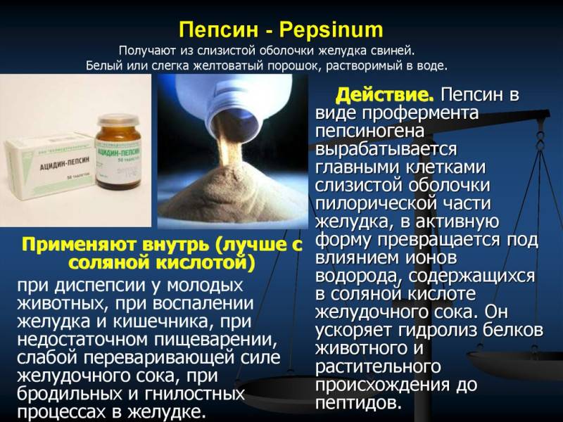 Выпускается в форме таблеток. В состав лекарства входит бетаин гидрохлорид (ацидин) и пепсин свиной. Аналогично панкреатину, пепсин является ферментным веществом.