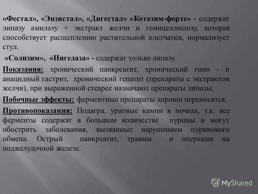 Для Фестала медицинскими показаниями, кроме вышеперечисленных нарушений функции поджелудочной железы, служат дополнительно: