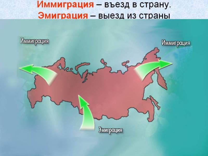 - Иммиграция. Это въезд человека на территорию страны для постоянного проживания.