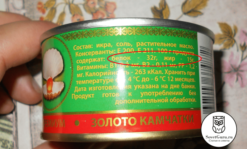 Количество белка и жира на 100 г продукта в натуральной икре