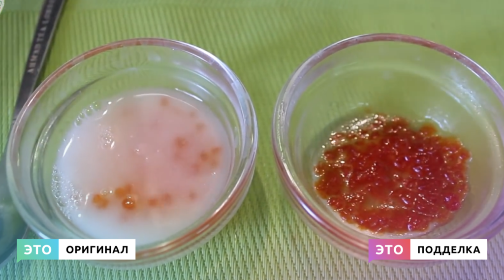 Еще в воде поддельная икра может раствориться, особенно если она из водорослей.