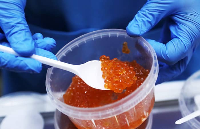В составе настоящей икры тоже есть белок, и его там довольно много, в отличие от поддельной икры. Поэтому определить натуральность продукта можно с помощью горячей воды.