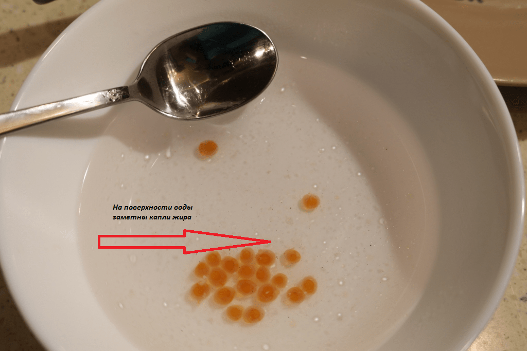 Если нет возможности набрать целую ложку икры, то попросите смазать ее маслом икры, после чего окуните в кипяток. Имитированная икра с рыбьим жиром или из водорослей никакого налета не оставляет, нет в ней и хлопьев, а помутнения в растворе не наблюдается. Зато на поверхность всплывают большие капли желтого жира и остатки красителя.