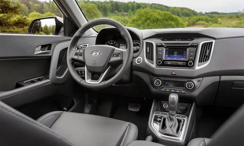 Впечатления об интерьере напрямую зависят от комплектации. Во всех Creta руль одинаковый и многофункциональный. Но чем дороже комплектация, тем шире его возможности. Приборная панель имеет изначально аналоговые дисплеи и монохромный экран между ними. А вот в топе уже есть 3,5-дюймовый экран и регулируемая подсветка.