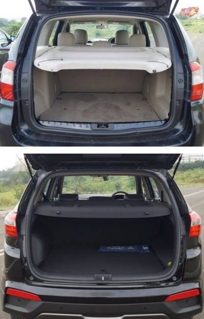 Boot space is adequate in both vehicles and it is the Terrano which offers more storage space at 475 litres compared to 402 litres of Creta.