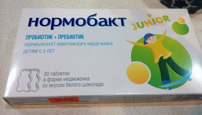 Для детей постарше (от 3-х лет) с нарушениями стула, подойдeт Нормобакт Junior в виде мишек. Это таблетки со вкусом белого шоколада, с лактобатериями ацидофилус и бифидобактериями в составе. Есть пребиотическая составляющая – фруктоолигосахариды.