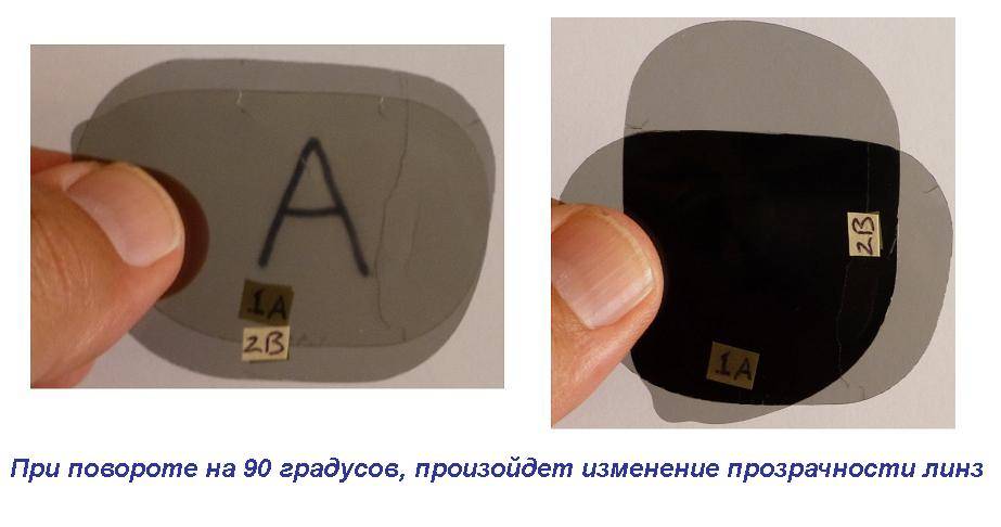 2 способ проверки — вращать очки перед дисплеем компьютера или смартфона, в определенном положении картинка полностью затемняется