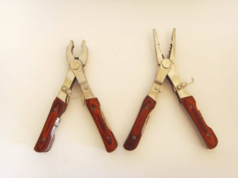 Изделие этого типа относится скорее к инструменту выживания, чем к обычным строительным и ремонтным инструментам. Об этом свидетельствует наличие множества функциональных элементов, входящих в комплект. Это набор ножей, отвертка, штопор и, конечно, плоскогубцы. Все это складывается в ручки последних, по принципу перочинного ножа.