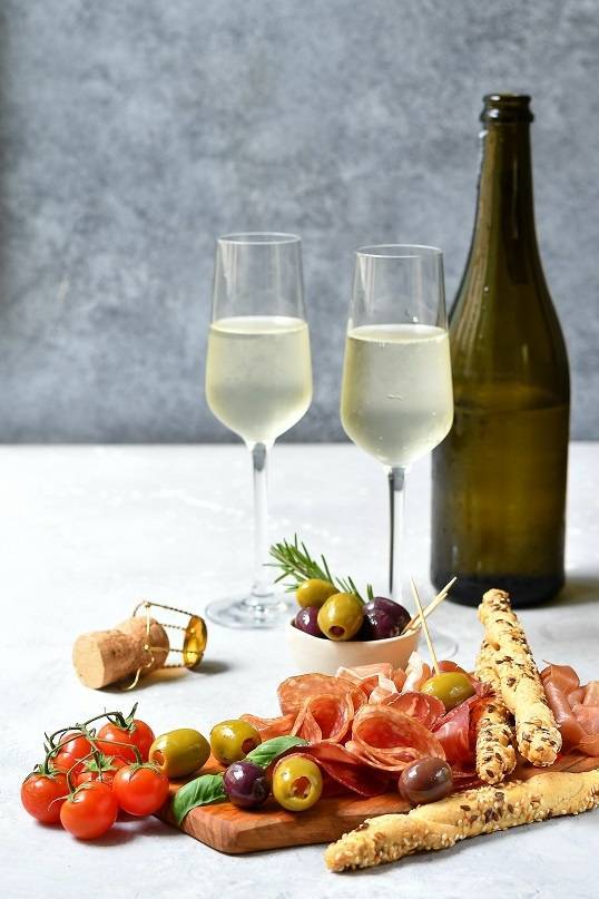 Просекко можно закусывать солеными снеками, рыбными блюдами, сырами.