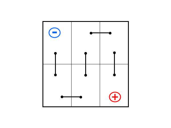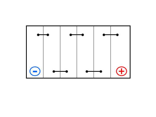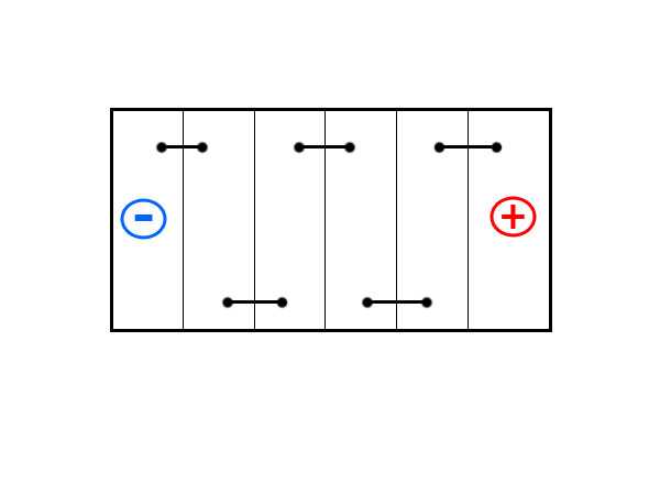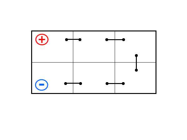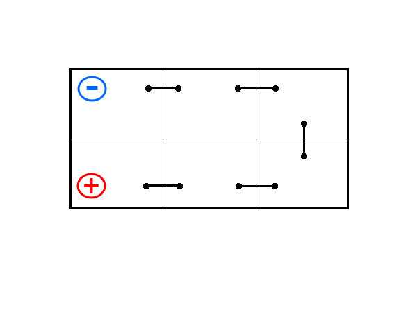 Есть батареи, которые обозначаются цифрой «2», однако используются они не так часто. Расположение токовыводов на них можно назвать диагональным: в одном углу на верхней крышке находится клемма со знаком «минус», а в противоположном углу — клемма со знаком «плюс». В этом случае поверхность крышки можно сравнить в боксерским рингом, а сами клеммы — с боксерами в начале раунда.
