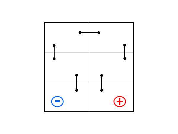 - «9» – токовыводящие элементы размещены по центру коротких сторон.