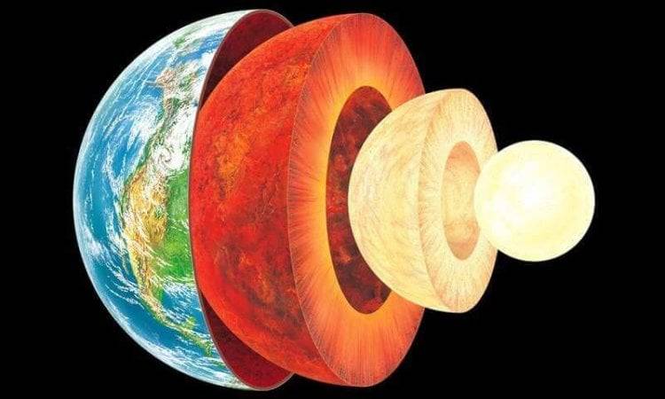 Установлено, что расслоение Земли на ядро и оболочки стало возможным после того, как температура ее отдельных частей достигла 1500° С, т. е. поднялась до точки плавления железа. Расплавленное тяжелое железо, скапливаясь по законам гравитации в центре, образовало ядро, вокруг которого происходила концентрация пород мантии и литосферы.