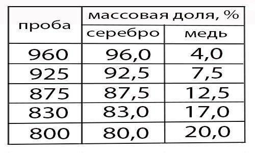 Цифры на маркировке означают процентное содержание серебра в сплаве. К примеру, проба 925 говорит, что в сплаве 92,5% серебра, а штамп 900 указывает на 90%-е содержание серебра