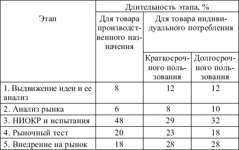 Создание нового товара – сложный и трудоемкий процесс. Длительность этапов разработки нового товара указана в табл. 2.6.