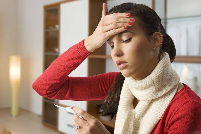 - Повышенная температура, которая обычно не поднимается выше 38 градусов и длится не трёх дней и более.