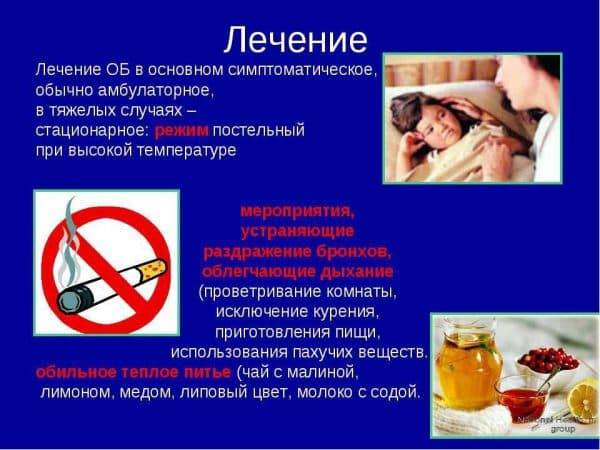 В период лечения рекомендуется обеспечить пациенту теплое питье, увлажнение и проветривание помещения. Также может понадобиться дополнительное введение кислорода для облегчения дыхания.