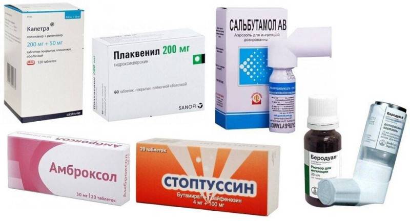 Если есть одышка, сдавление в груди, падает уровень кислорода в крови, то показана госпитализация в стационар, где применяют препараты с противовирусным и иммуномодулирующим действием (например, Калетра, Плаквенил). При признаках присоединения бактериальной инфекции к терапии добавляют антибиотики. При развитии дыхательной недостаточности подают кислород через маску или вводят в трахею трубку и переводят больного на искусственную вентиляцию легких.