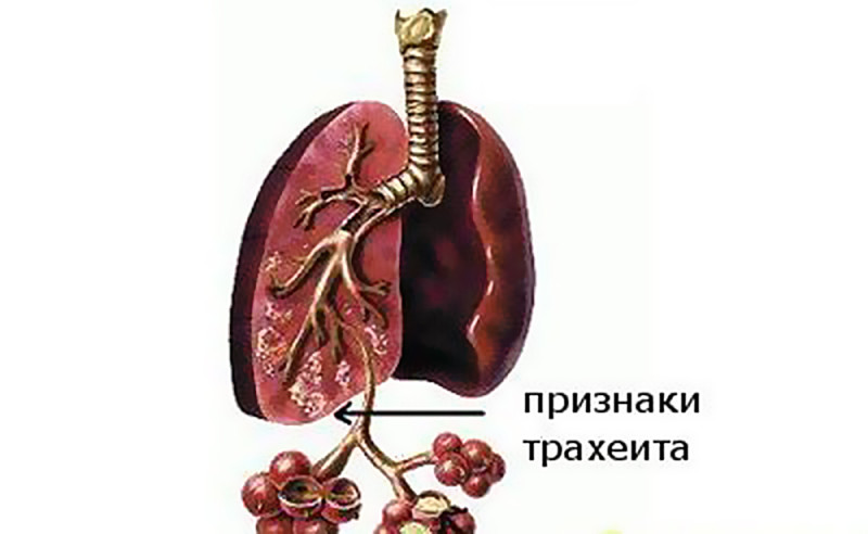 Воспалительный процесс, развивающийся в самих трахеях, носит название трахеит. Он так же, как и бронхит, относится к заболеваниям дыхательных путей верхнего сегмента. Трахеи — соединительная часть гортани с бронхами. Чаще всего трахеит возникает на фоне насморка или ларингита.