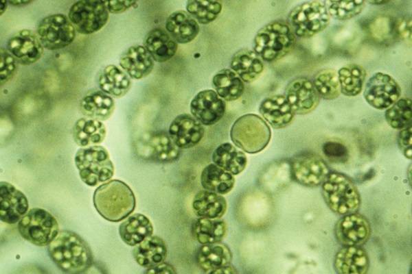 - Бактерии, способные к фотосинтезу (пример — цианобактерии).