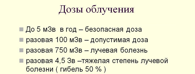 - рентгенографические установки за один сеанс излучают до 0,5 мЗв.