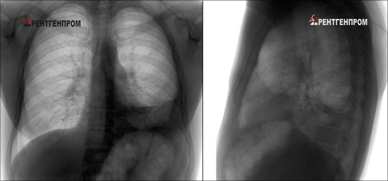 - Обзорное исследование включает съемку рентгеновского изображения в двух проекциях: прямой и сбоку.