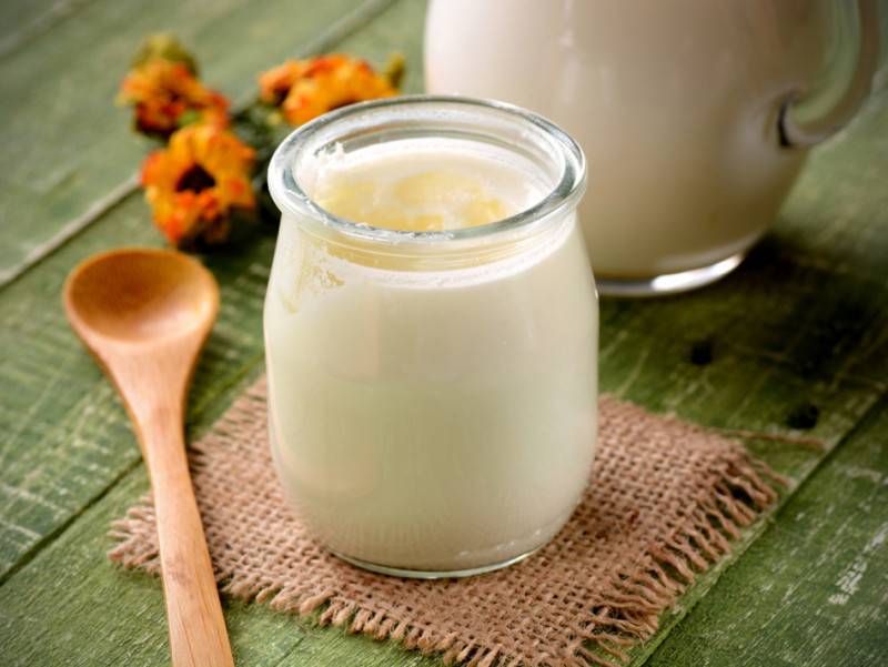 Йогурт – это кисломолочный продукт, сквашенный различными видами болгарской палочки, а также термофильного стрептококка. Практически любой йогурт имеет в своем составе сухое молоко, но это нисколько не уменьшает его полезных свойств. Напротив, в качественном сухом молоке намного больше полезных веществ, чем в обыкновенном. К тому же именно благодаря повышенному содержанию сухих веществ, процент выживаемости правильных бактерий в йогурте увеличивается в разы. Йогуртовая закваска намного эффективнее других заквасок способна ферментировать лактозу. Поэтому йогурт могут употреблять в пищу даже те, чей организм не переваривает молоко. Также йогурт – один из немногих кисломолочных продуктов, который обладает сверхустойчивостью к желудочному соку. Благодаря этому полезные микроорганизмы без труда добираются даже до кишечника.