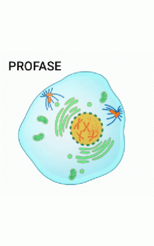 - Профаза. Хроматин, представляющий собой рыхлую упакованную ДНК, конденсируется. Затем оболочка ядра разрушается и вскоре образуется митотическое веретено (веретено деления) — структура из микротрубочек, предназначенная для разделения хромосом в процессе митоза и распределения генетического материала между дочерними клетками.