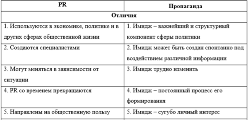 Сходства и различия PR и технологий создания имиджа