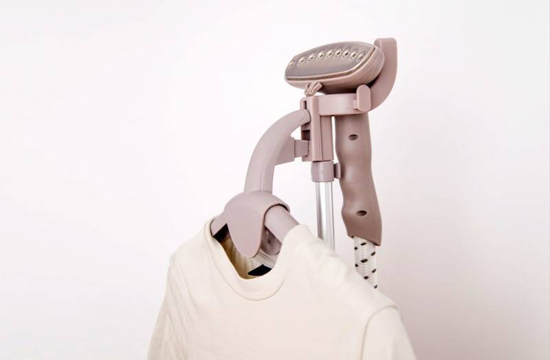 - удобно гладить одежду на стойке – в комплекте с отпаривателем часто идет набор вешалок;