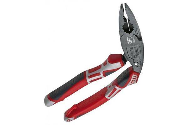 Многофункциональные изогнутые пассатижи Nws используются для резки, захвата, изгиба проводов или металла. Эта модель имеет ассиметричные поверхности, угол головки инструмента повернут на 45 градусов, а его вес составляет всего 280 грамм. Встроенный гаечный ключ обеспечивает крепкий захват, предохраняя крепеж от повреждений. Режущие кромки обработаны высоковольтным током, что дополнительно придает им прочность и устойчивость. Сами пассатижи изготовлены из инструментальной кованной стали, она также имеет антикоррозийное покрытие.
