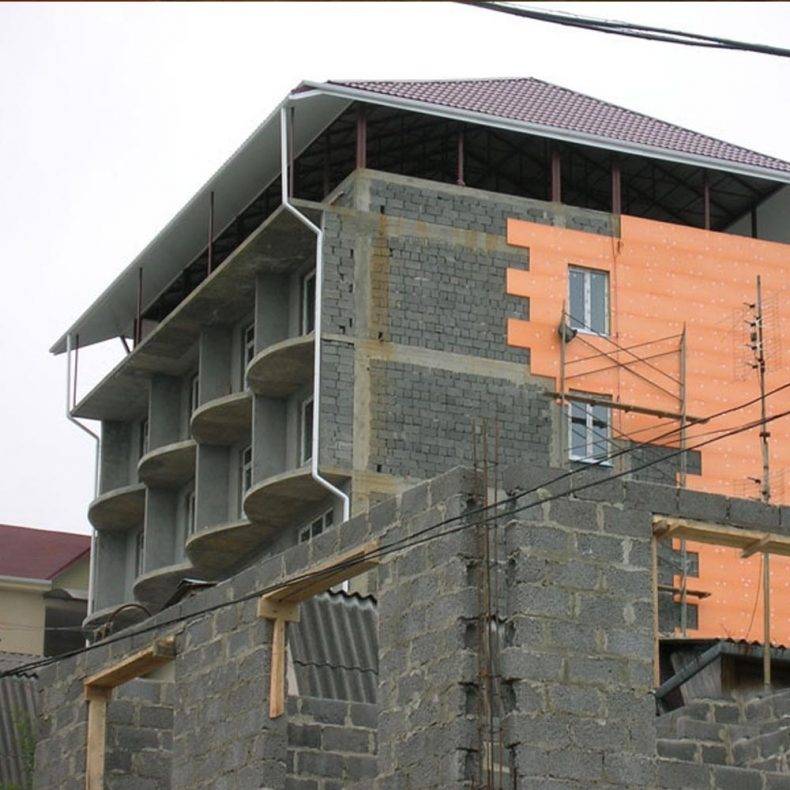 - низкая теплопроводность — 0,037-0,041 Вт/(м·K), сравнимая с минеральной ватой, что позволяет эффективно утеплять конструкции здания из кирпича, бетона, керамзитобетона, газосиликатных блоков и т.д.;