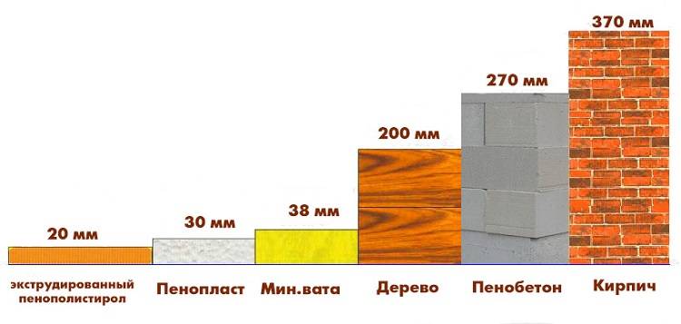 Сравнение толщин утеплителей, обеспечивающих одинаковую величину теплоизоляции