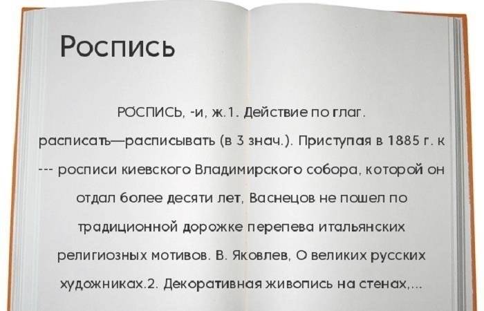 Роспись — это собственноручное написание своего имени или иных символов на определенном документе или поверхности. Роспись является подтверждением авторства и подписью личности, которая ставит свой подпись.