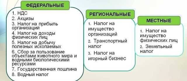 Если рассмотреть конкретнее, то виды налогов и сборов закрепляются в 12 статье Налогового Кодекса РФ, которая устанавливает трёхступенчатую налоговую систему, включая налоги: