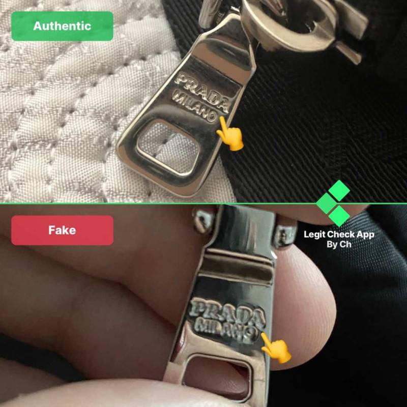 The authentic Prada 2005 Re-Edition bag’s zipper inscriptions are thinner.