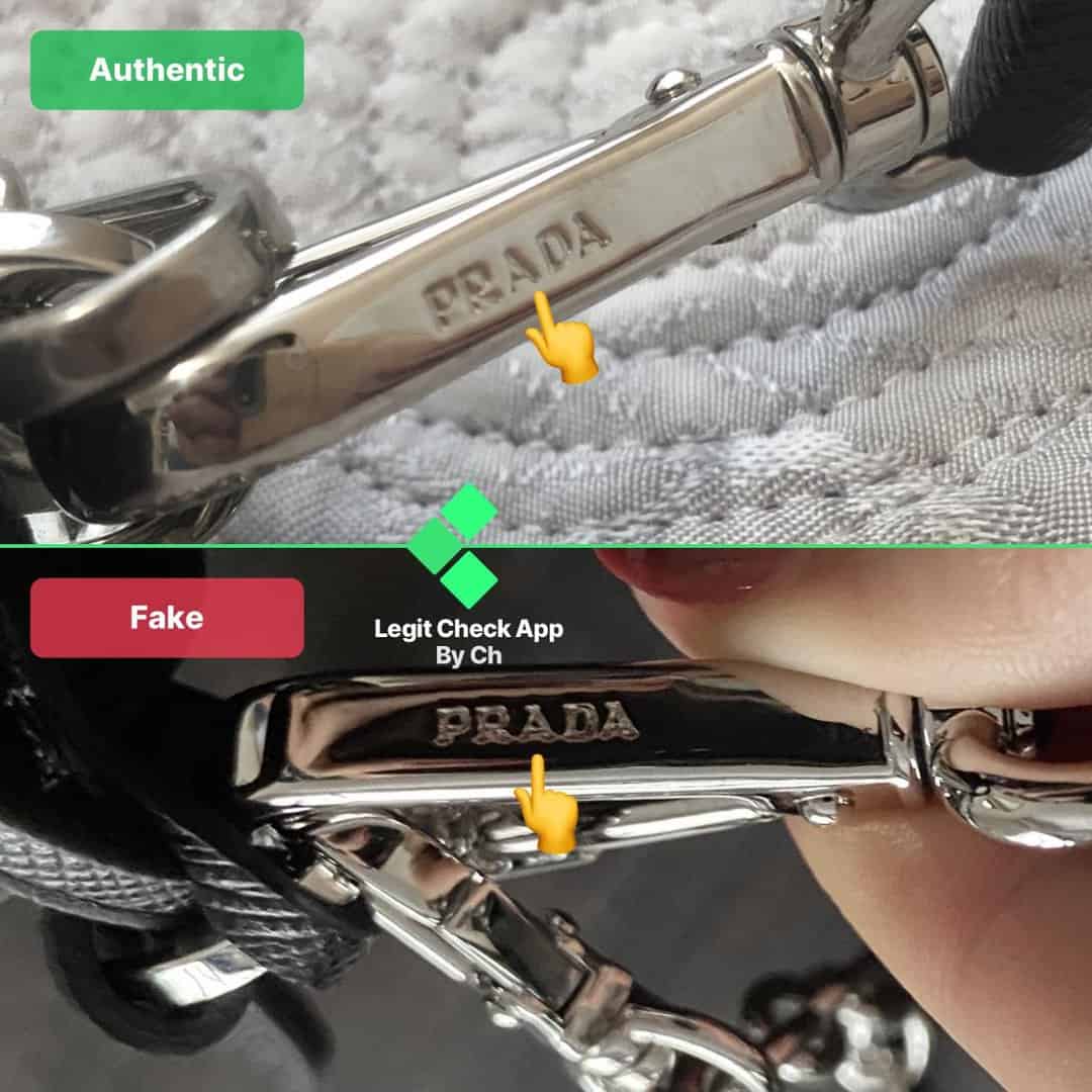 As for the authentic Prada bag, you can see how it has its chains looking less shiny than the ones on the fake bag.