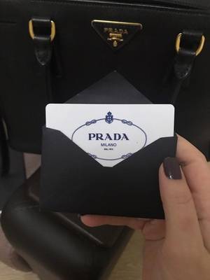 Если продавец выносит сумку в полиэтиленовом пакете, значит она не настоящая, а дешевая подделка. Изделие Prada производитель пакует в хлопковый мешок с затягивающимся шнурком. Цвет такой упаковки может быть белым или синим. На ткань нанесен черный или золотистый логотип компании. Внутри каждого мешка находится бирка с надписью состава, указанием фирмы и страны изготовления. Сумку упаковывают в тканевый мешок и только потом складывают в коробку.