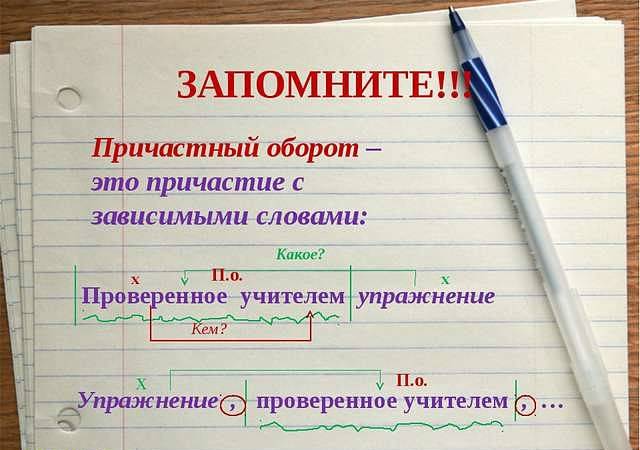 Причастие является неличной формой глагола и может выступать в качестве определения или обстоятельства. Оно образуется при помощи приписывания к корню глагола окончаний, которые указывают на время, число и род существительного, к которому оно относится. Причастие может быть причастным оборотом, предложным причастием или наречием, запятые регулируются правилами русской пунктуации.
