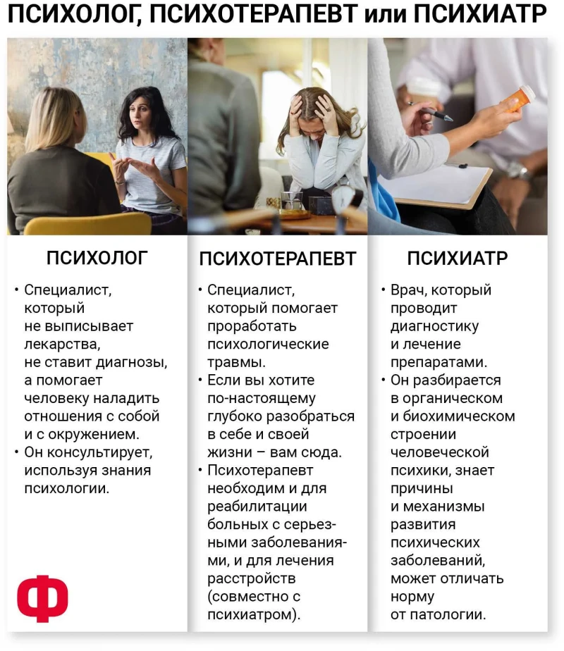 Итоги: чем отличается психиатр от психотерапевта и психолога