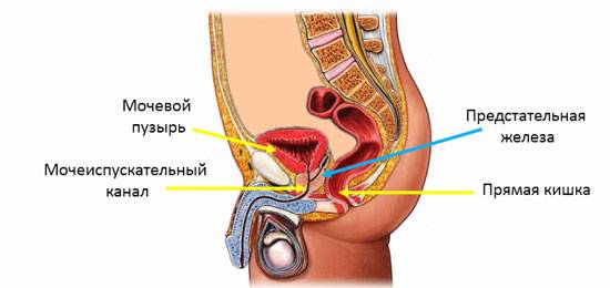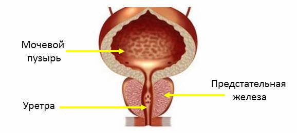 Сверху над ней находится мочевой пузырь, от которого прямо в толщу железы идет мочеиспускательный канал (уретра). Простата «насажена» на него, словно кусок мяса на шампур.