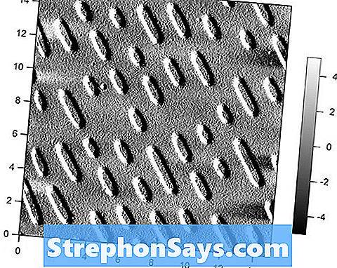 Ямы и неровности на поверхности компакт-диска (увеличено с помощью атомно-силового микроскопа)