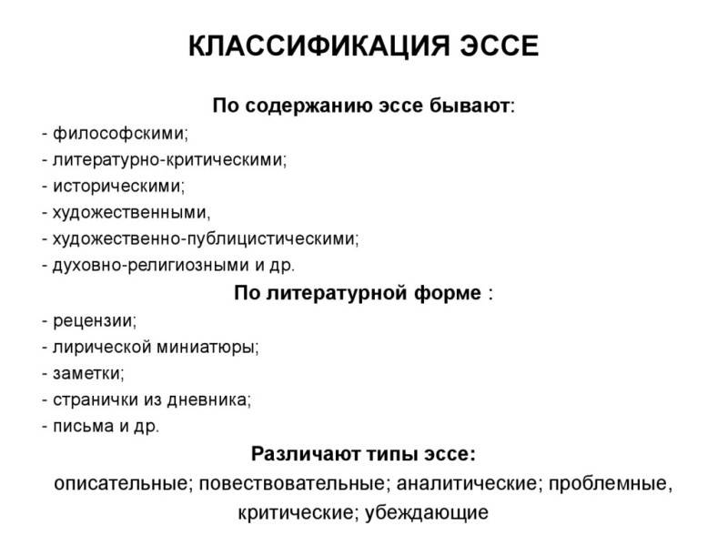Филологи и лингвисты выделяют различные формы и классификации эссе.
