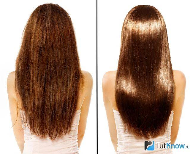 Затем пряди споласкивают. Эффект виден сразу: увеличивается объем, появляется здоровый блеск, мягкость и шелковистость.