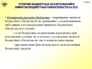 При этом в предоставленных Минфином данных должна быть ссылка периода, на который будет осуществлена отсрочка или уменьшение лимитов обязательств, после чего производится отзыв заявленных ассигнований. Блокировка ассигнований возможна в том случае, если уполномоченные представители казначейства сомневаются в целесообразности выделенных денежных средств.