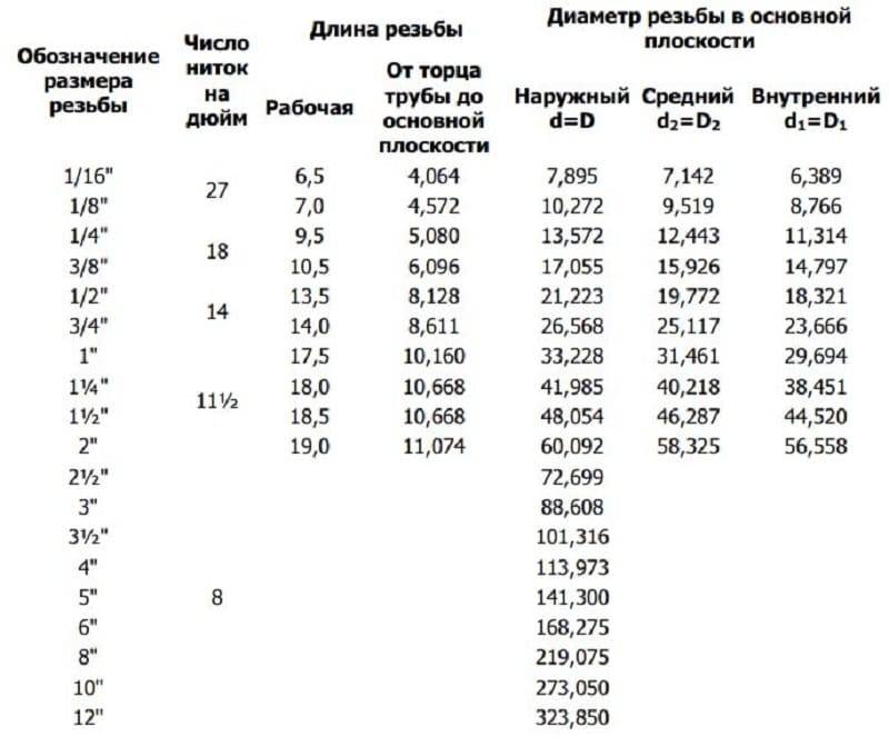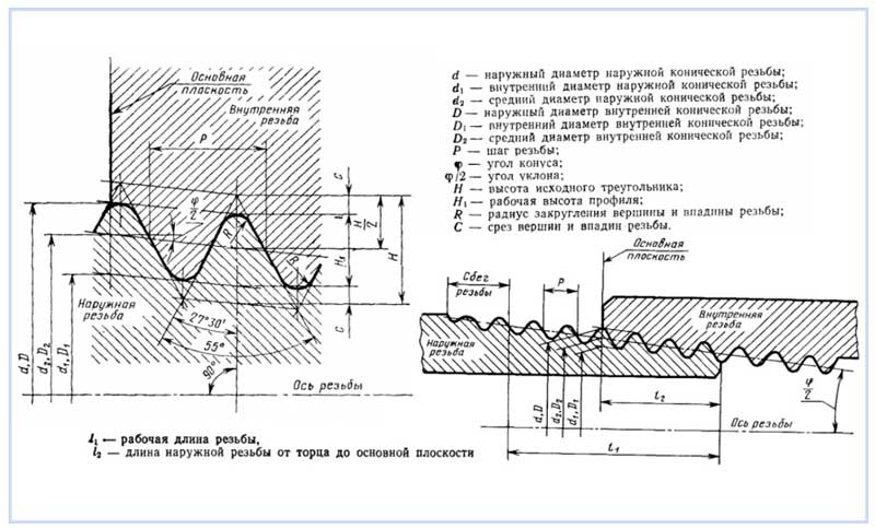В России действует адаптированный стандарт трубной резьбы – ГОСТ 6357-81. Точные значения всех параметров резьбы и трубы, на которую резьба нанесена, берутся из справочных таблиц.